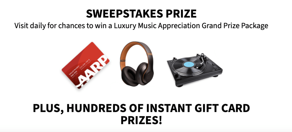 - Sweepstakes Name: AARP Power of Music Sweepstakes