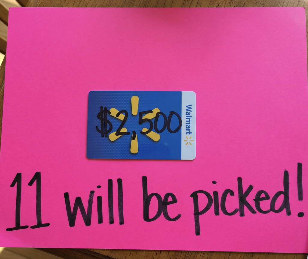 There are 11 total winners. One Grand Prize winner walks away with a $2,500 Digital Walmart Gift Card — enough for a serious shopping spree. Ten First Prize winners each receive a $250 Digital Walmart Gift Card. The total prize pool is $5,000 in Walmart gift cards, all delivered digitally.