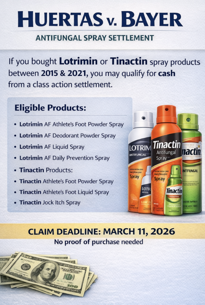 If you purchased Lotrimin or Tinactin antifungal spray products at any point since 2015, you may qualify for a cash payment from a $4.85 million class action settlement.