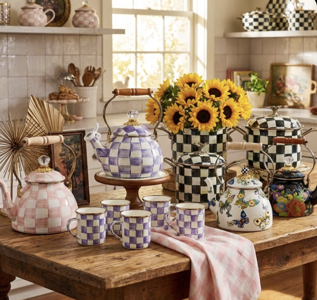 - Iconic Cookware: A Courtly Check tea kettle sitting on the stove is more than just a tool for boiling water; it’s a piece of functional art that brings a smile to your face every morning.