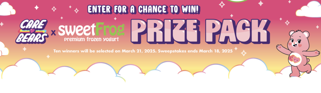 What do you get when you mix the nostalgia of Care Bears with the sweet, creamy goodness of sweetFrog? The most adorable prize pack you’ve ever seen, that’s what! Whether you’re a froyo fanatic, a die-hard Care Bear lover, or just someone who can’t resist a good bucket hat, this giveaway is for you.