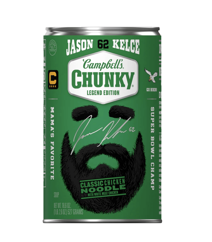 - Prize: 620 winners! One (1) Campbell’s® Chunky® Jason Kelce “Legend Edition” can in a presentation container. Approximate Retail Value: $9.48 each.