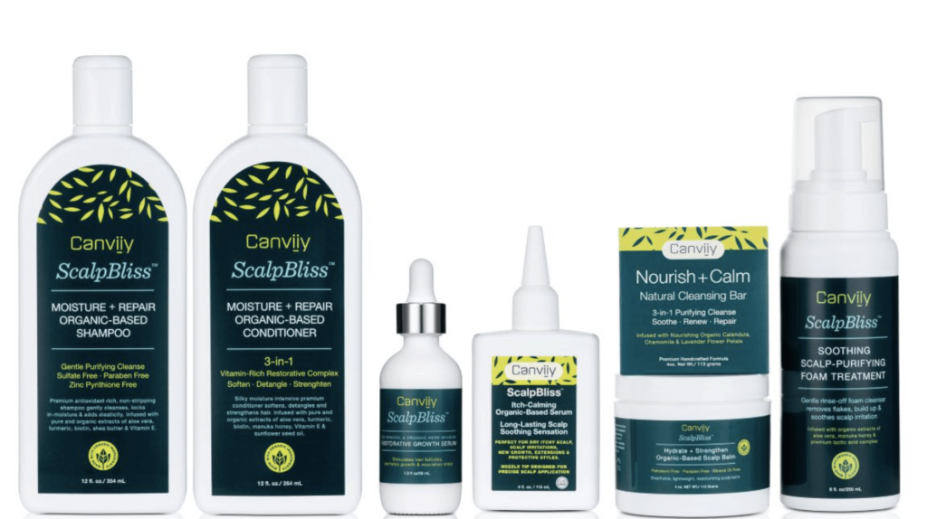 Canviiy ScalpBliss Itch Calming Serum is a game-changer for all scalp types. Whether you’re experiencing dryness, itching, irritation from coloring, extensions, wigs, protective styles, or extreme flaking, Canviiy has got your back. This innovative serum provides hours to days of relief, making it a go-to solution for many. In fact, it’s so effective that it’s trusted as a natural alternative to steroid creams in some of the top Cancer centers in the nation.