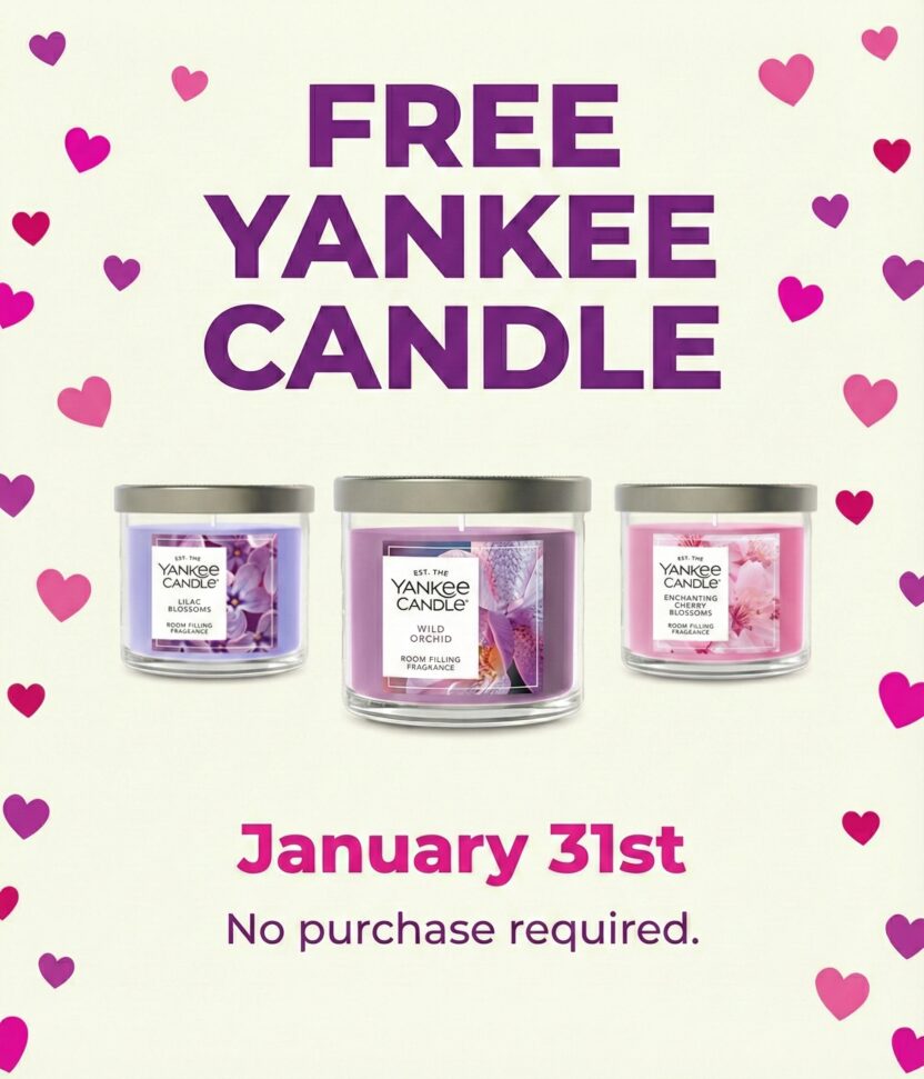 Freebies 2 Min Read Freebie Mom onJanuary 30, 2026 Score a FREE Yankee Candle Jan 31st – No Purchase Required FREE Yankee Candle Small Tumbler – Jan 31 In-Store Event Get a FREE Yankee Candle In-Store This Saturday Yankee Candle is inviting…