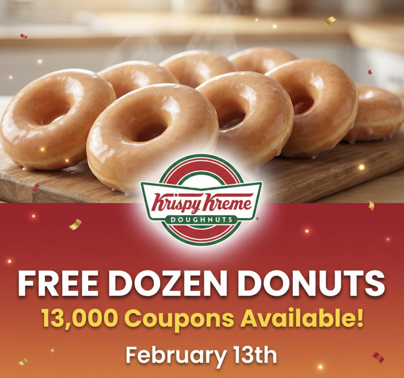 Freebies 2 Min Read Freebie Mom onFebruary 12, 2026 Krispy Kreme Is Giving Away 13,000 FREE Dozens This Friday 🍩 Krispy Kreme Is Giving Away 13,000 FREE Dozens This Friday Cancel the bad luck — Friday the 13th is about to get very sweet.…