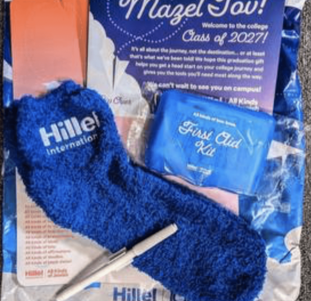 Each student who signs up will receive a free welcome gift as an expression of Hillel’s commitment to supporting their college journey. This token of appreciation is a great way to kick off the academic year and make students feel more connected to their campus community. The welcome box includes fuzzy socks, first aid kit, pen and other goodies!