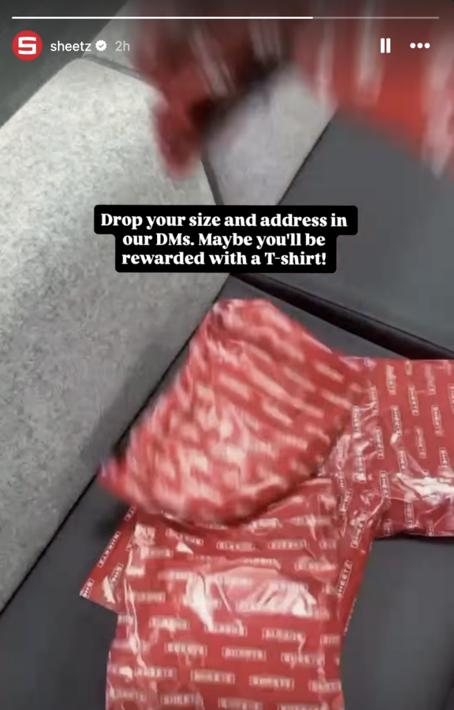 Sheetz occasionally posts Instagram Stories asking for engagement or feedback. When followers reply politely with their information, some are rewarded with branded merchandise, including T-shirts.