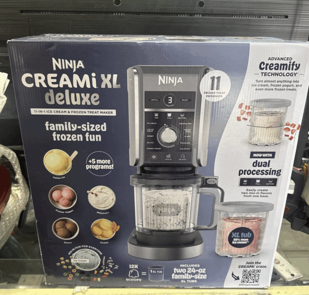 - Ninja Creami Deluxe 11-in-1 Ice Cream Maker ($229) – churn out low-sugar sorbets, post-workout protein ice creams, or late-night cookie dough blends.
