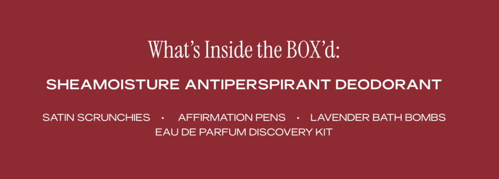 This exclusive box includes Satin Scrunchies, Affirmation Pens, Lavender Bath Bombs, an Eau De Parfum Discovery Kit, and SheaMoisture Deodorant. Each item has been carefully selected to enhance your well-being and bring a touch of luxury to your daily routine. It’s the perfect way to pamper yourself and indulge in a little self-care.