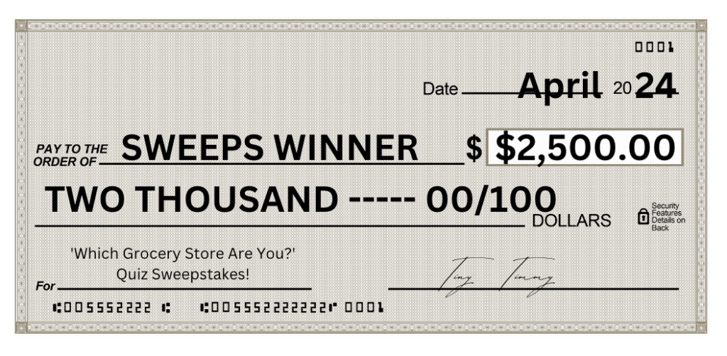 Here’s a quick recap of the key details for the ‘Which Grocery Store Are You?’ Quiz Sweepstakes: