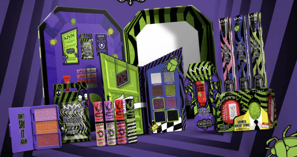 - NYX Beetlejuice Collection Vault – This limited edition vault features a range of high-quality, vibrant makeup products inspired by the iconic Beetlejuice movie. With a mix of bold eyeshadows, luscious lipsticks, and dazzling highlighters, this collection allows you to create stunning looks that capture the eccentric spirit of Beetlejuice. The collection is perfect for makeup enthusiasts and Beetlejuice fans alike, offering a unique blend of NYX’s cosmetic expertise and the movie’s quirky charm.