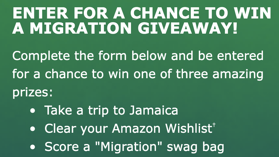 - Giveaway Title: The Migration Movie Sweepstakes