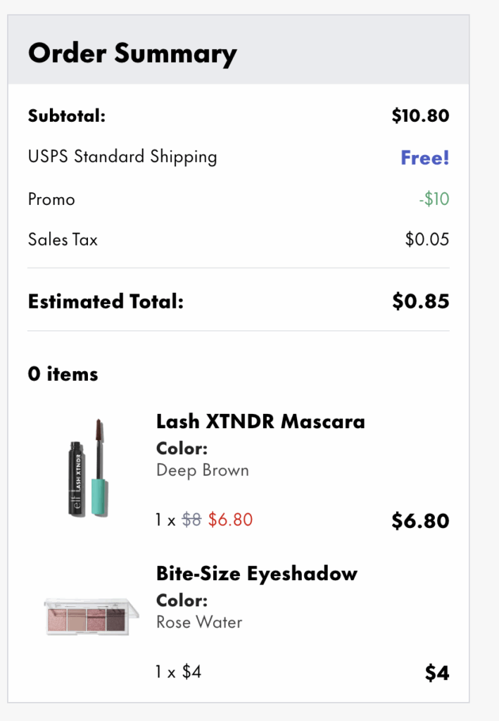 Elf has a $10 off $10 Beauty Squad reward you can use on anything $10 or under. I tested this deal myself and paid only 85 cents after stacking the free shipping trick.