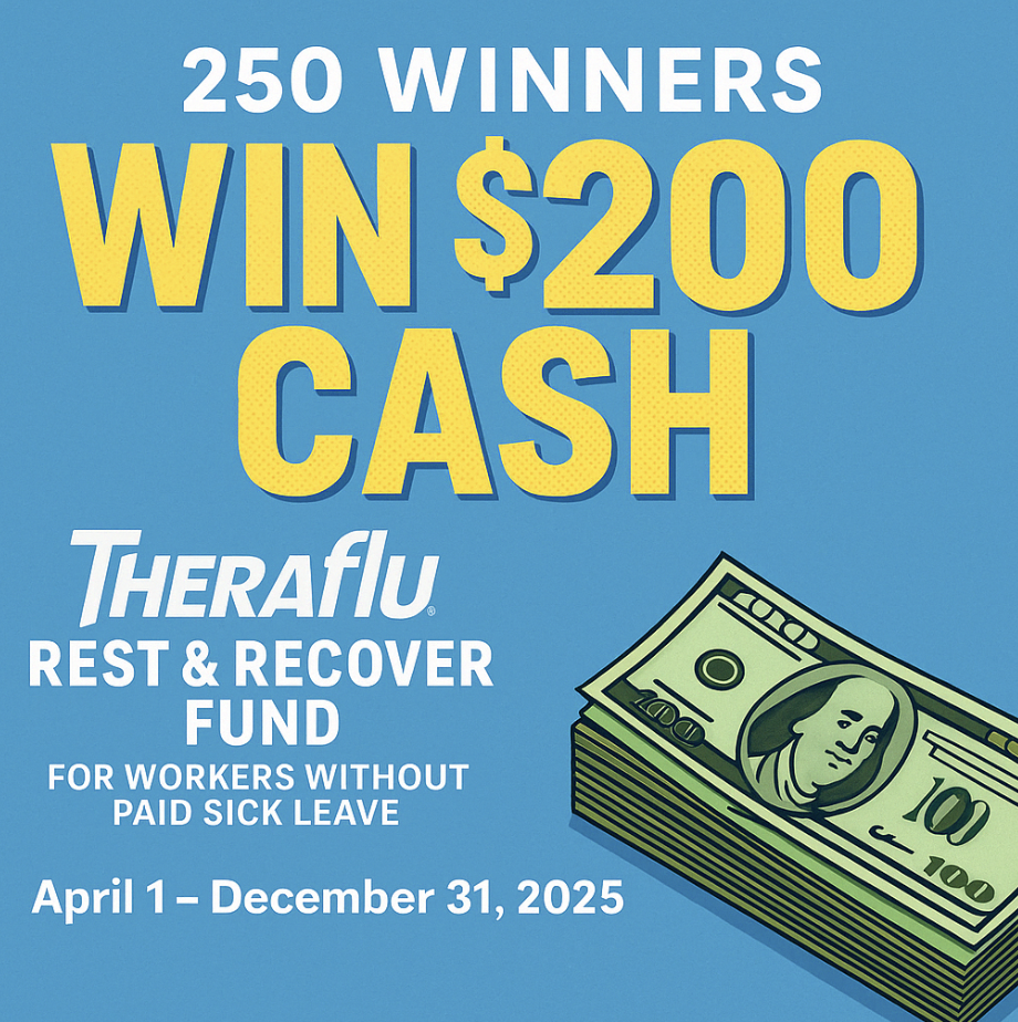 This sweepstakes is open until December 31, 2025, and it’s built specifically for workers who are left out of one of the most basic job protections: paid sick time. If your boss doesn’t offer it, Theraflu might have your back with a little extra cash.