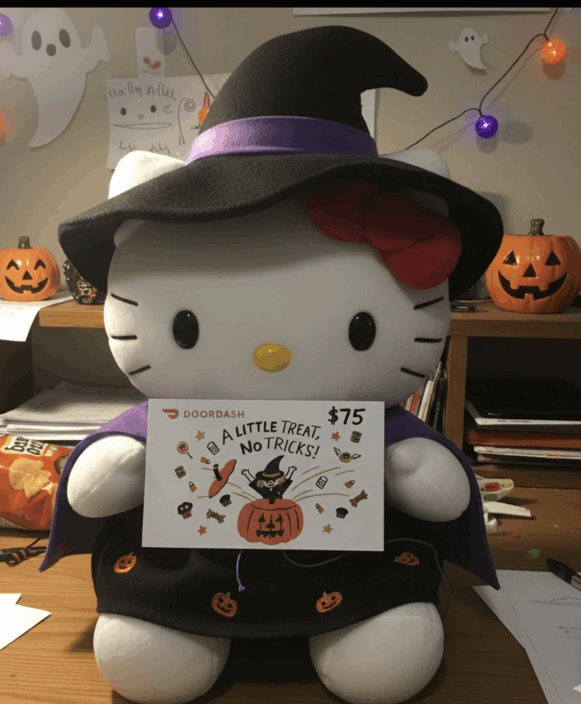 - Use it for a themed night: turn your living room into a mini-movie theatre with DoorDash delivery, maybe Halloween leftovers, popcorn, lights down — the prize makes it easy.