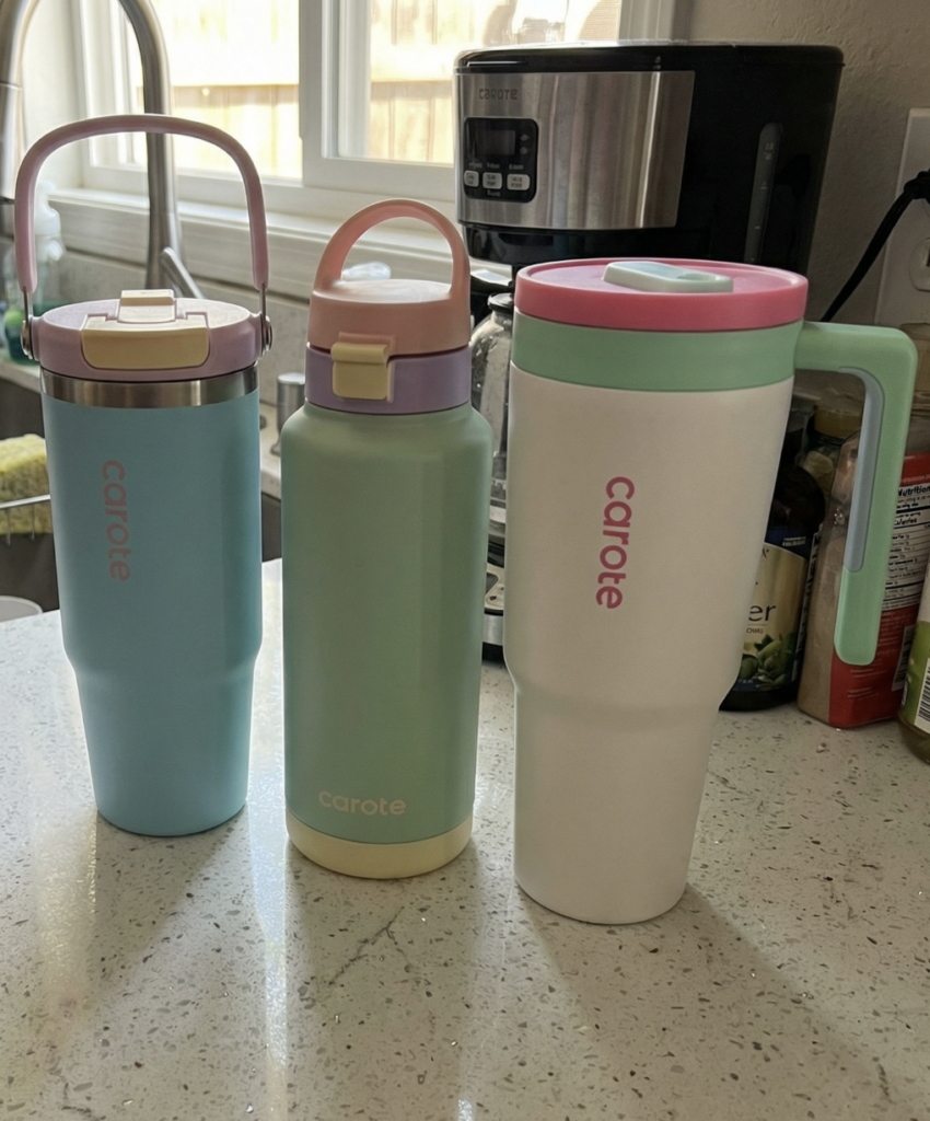 On Walmart, add the Carote 3pc Stainless Steel Tumbler Set to your cart and check out. You get to pick from 4 different styles — pick whichever one you like best! Your order total must be at least $25.99 (before tax and shipping) to qualify.