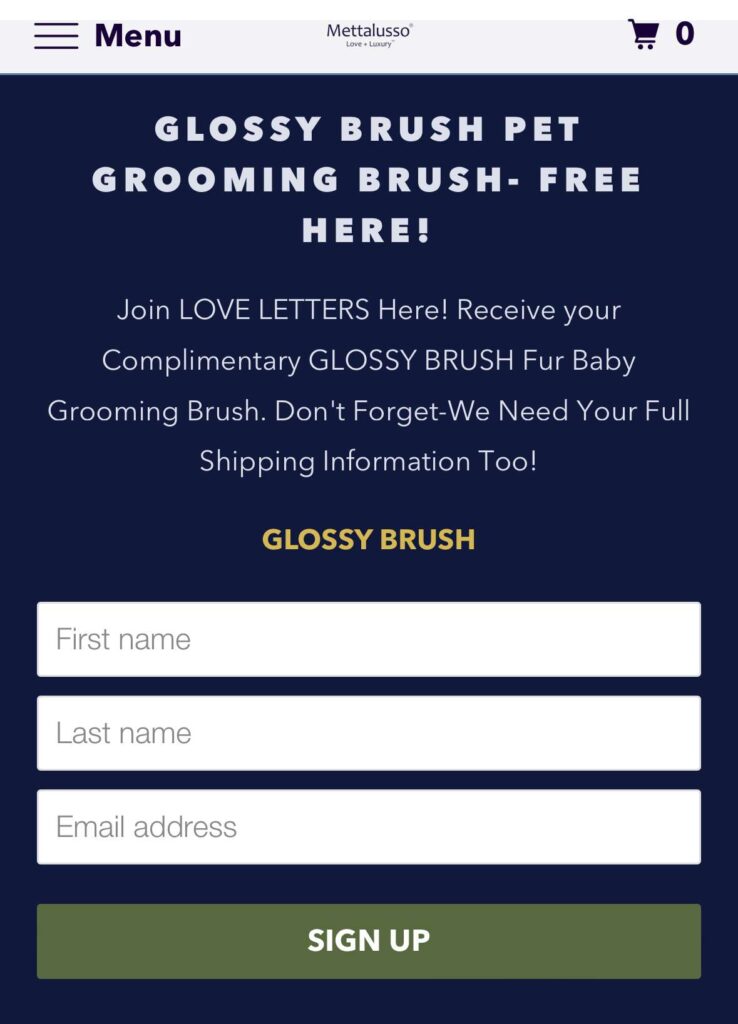 Ready to experience the incredible benefits of the Glossy Brush for yourself? Claiming your FREE Glossy Brush Pet Grooming Dog Brush is quick and easy. Simply head to the site: Glossy Brush Pet Grooming Dog Brush and once you are there scroll to the bottom (almost the bottom) of the page, right below the reviews. You will see something exactly as pictured below, fill it out and when they email you send them your mailing address!