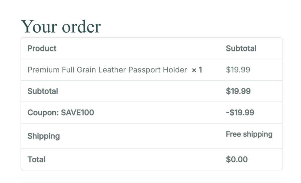 A premium full grain leather passport holder — normally priced at over $19 — is currently showing as completely free with free shipping included when you add it to your cart at checkout. No extra coupon codes needed — it’s auto-applied for now.
