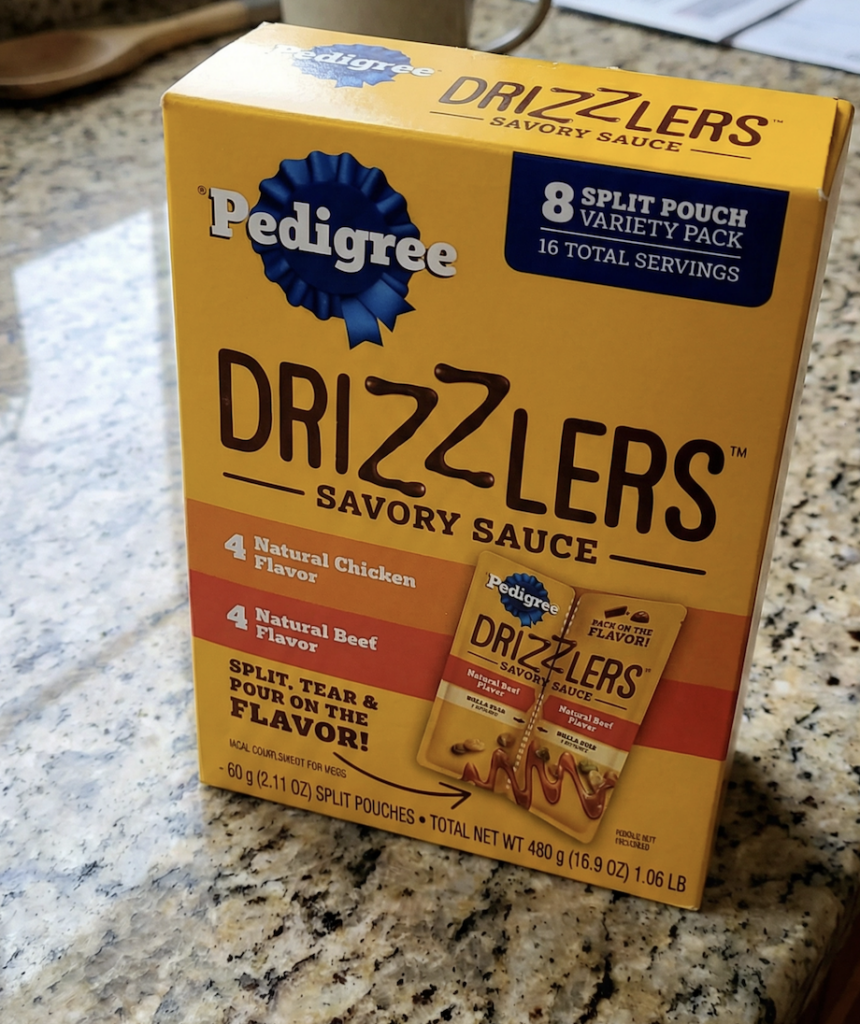 PEDIGREE® has been a trusted name in dog nutrition for decades. Their Pouches & Drizzlers line is designed to make mealtime more exciting for your pup. The savory sauce pouches are easy to use — just split, tear, and pour over dry kibble. Made with quality ingredients and complete, balanced nutrition to support healthy digestion, strong bones, and everyday vitality.