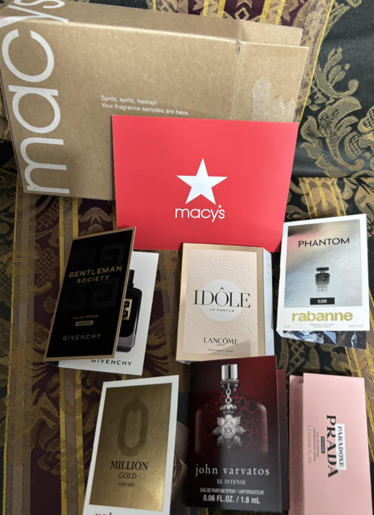- “Macy’s free fragrance box”