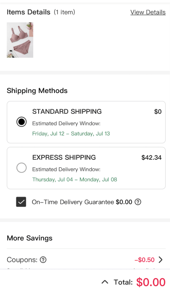 - Apply Coupons: In the “COUPONS” section, select the 50% off coupon.