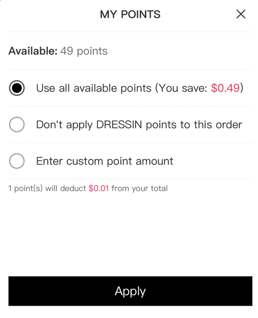 - After verifying your email, you will automatically get 100 points in your DRESSIN account.