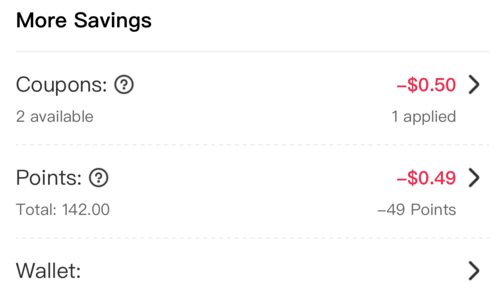 HERE IS WHAT THE COUPON AND POINTS SECTION LOOKS LIKE: