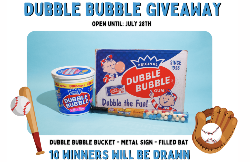 The Dubble Bubble Giveaway offers an exciting array of prizes for its winners. Ten lucky individuals will each receive a Dubble Bubble Prize Pack, which includes a Dubble Bubble Bucket, Metal Sign, and Filled Bat. Imagine how much fun you can have with these fantastic prizes!