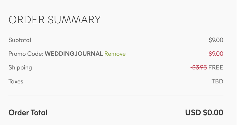 - At checkout, enter the promo code WEDDINGJOURNAL