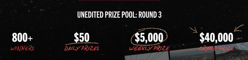 - Weekly Prize ($5,000): That’s enough for a new wardrobe overhaul, a luxe vacation, or finally upgrading every single appliance in your kitchen. It’s “main character energy” money—splashy, indulgent, but also practical if you want it to be.