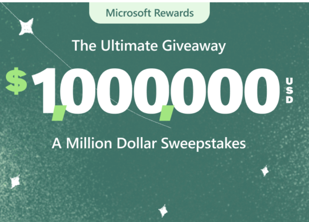 Microsoft Rewards Ultimate Giveaway $1 Million, win cash prizes, Microsoft sweepstakes.