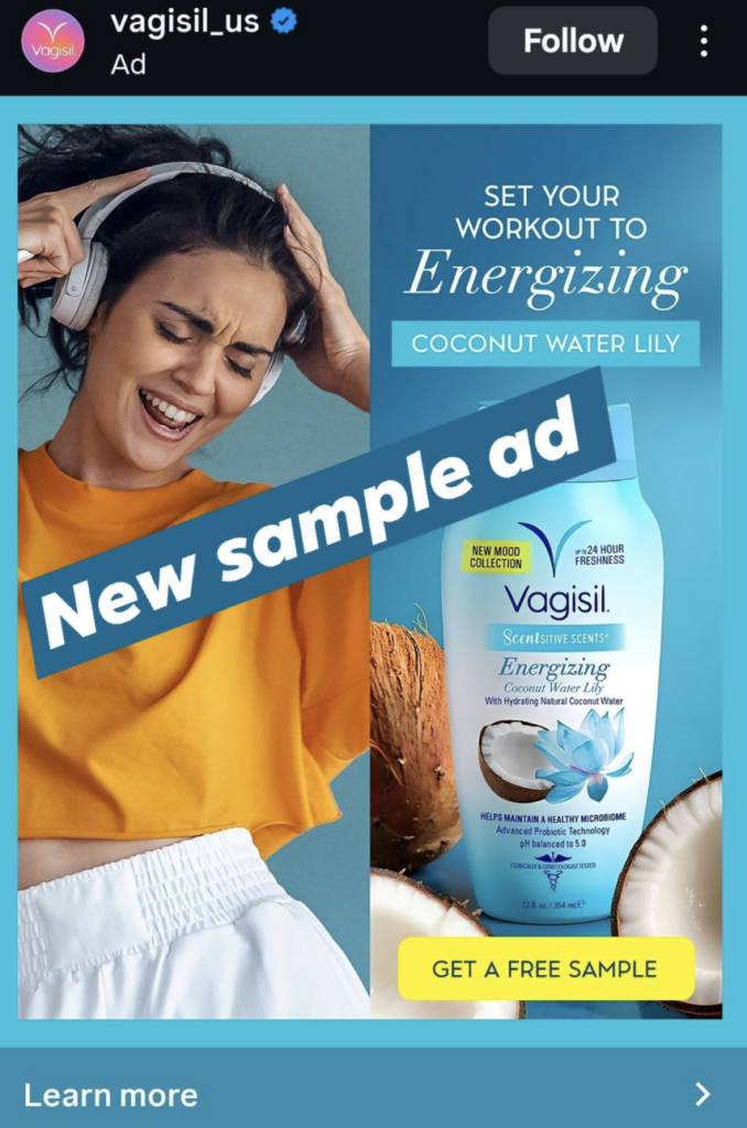 - This is a possible Vagisil free sample showing as a Facebook ad.