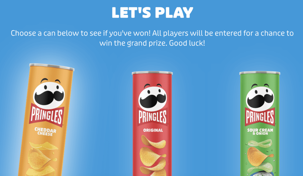 - There are also 10,000 instant win prizes available, each of which is a can of Pringles. The approximate retail value of each instant win prize is $2.29.