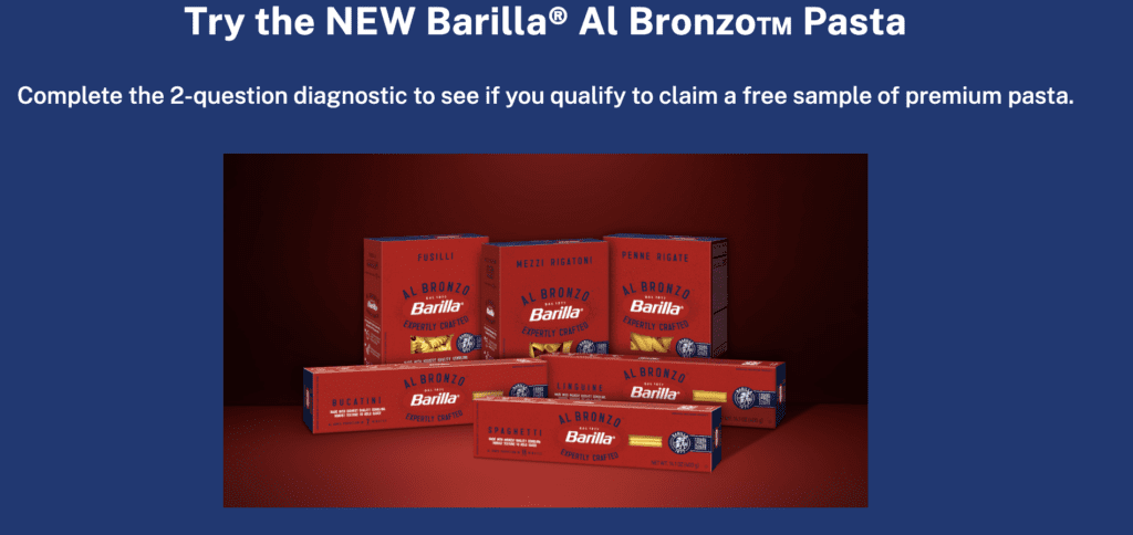 Claim Your Own Free Barilla Al Bronzo pasta Sample