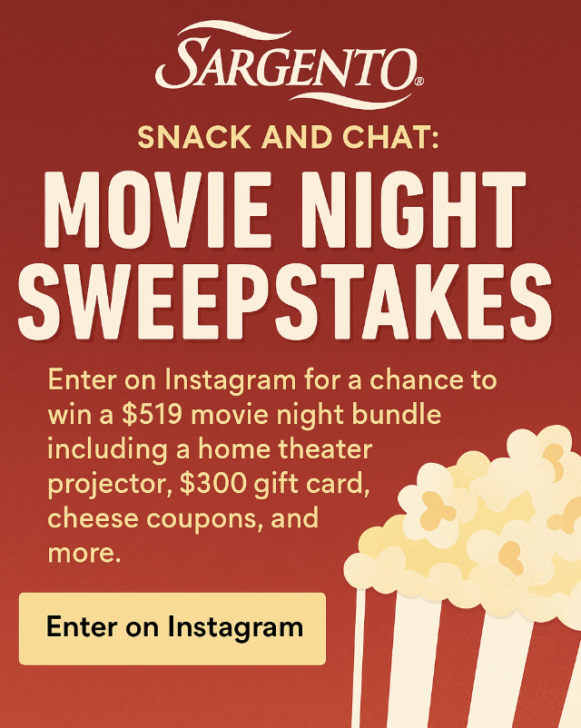What would you do with your very own home theater setup, a cozy branded blanket, snacks on deck, and a $300 gift card? If you’re dreaming of upgrading your next movie night without spending a dime, you might want to take a scroll over to Instagram—because Sargento is hosting the Snack and Chat: Movie Night Sweepstakes, and it's loaded with cozy vibes and real prizes.