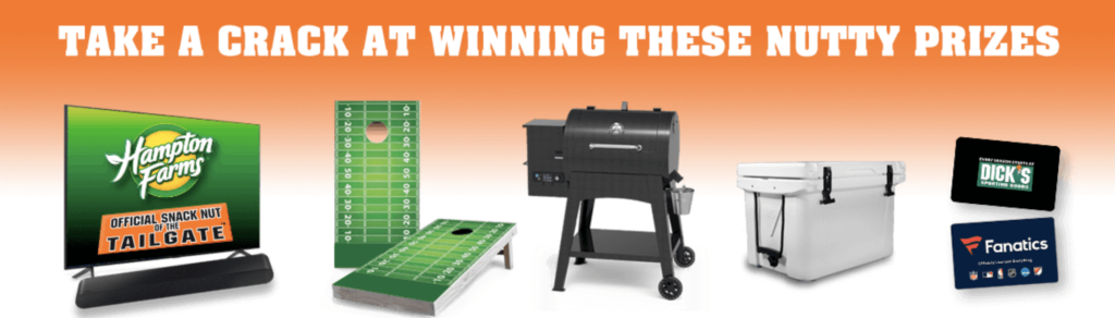 Entering the Hampton Farms Fall Football Instant Win Game and Sweepstakes is as easy as a touchdown! During the promotion period, visit nuttiesttailgate.com and complete the one-time online registration form. After registration, you’ll have the opportunity to play the Instant Win Game for a chance to win one of the Instant Win Prizes.