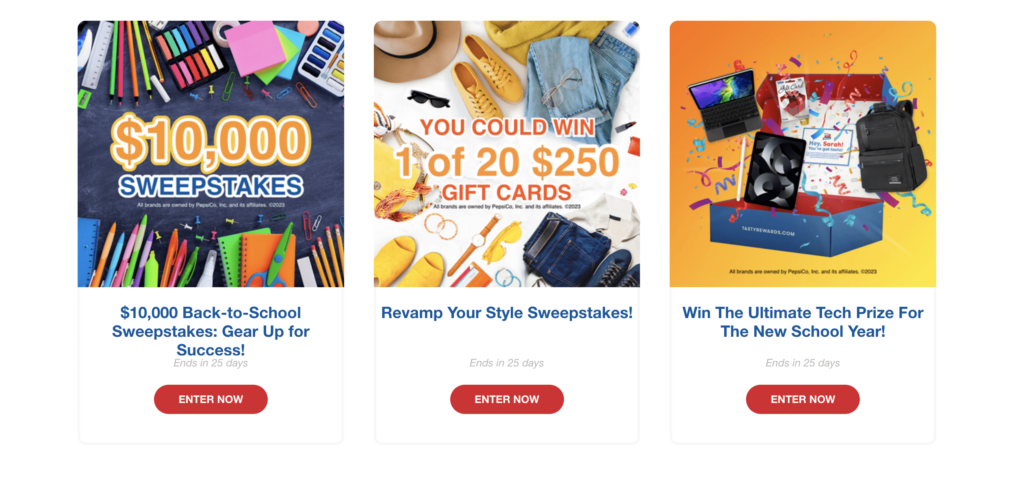 The Tasty Rewards Promotion runs from May 15, 2023, to December 24, 2023. Within this period, there are ten separate entry periods, each with its own set of prizes. It’s important to note that this promotion is open only to legal U.S. residents of the 50 United States or the District of Columbia who are 18 years of age or older and Tasty Rewards members at the time of entry. Unfortunately, employees, contractors, and directors of Pepsi-Cola Company, Frito-Lay, Inc., and their immediate family members are not eligible to participate.