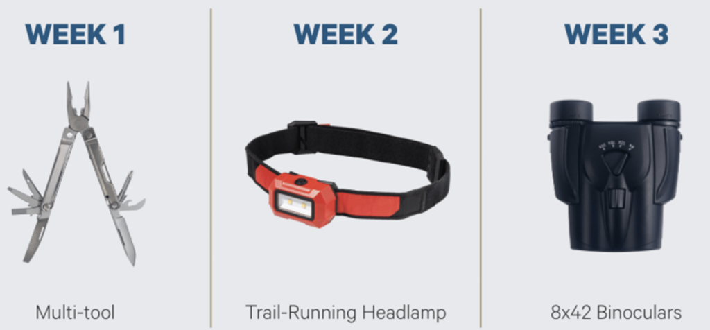 - Week 3: 20 winners will each receive Sponsor-specified 8-24×25 Binoculars (ARV: $143.99 each).