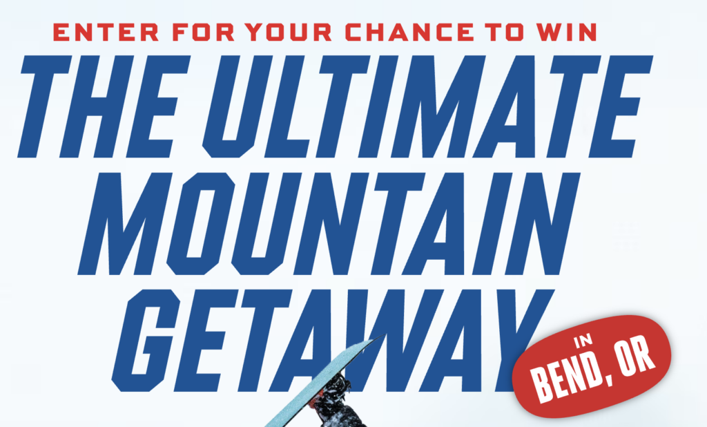 - A 4-day, 3-night trip for two to Bend, Oregon, including airfare, hotel, lift tickets, a brewery tour, and a $500 gift card.