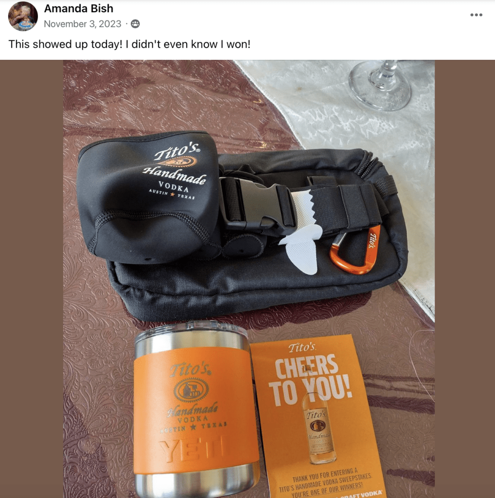 - Summer of Tito’s Sweepstakes (this one ends September 3, 2024)