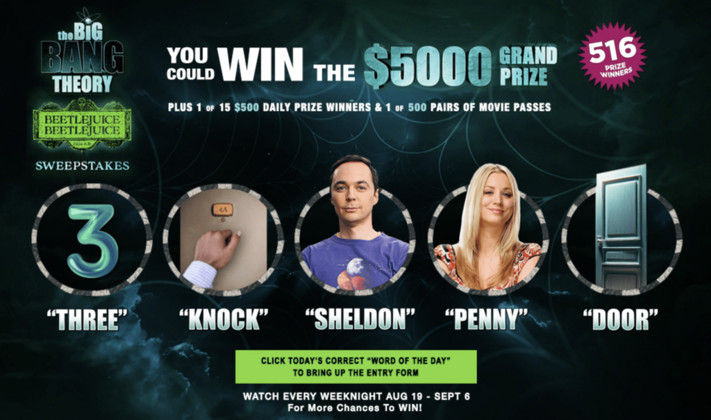 THE BIG BANG THEORY Beetlejuice Beetlejuice Sweepstakes