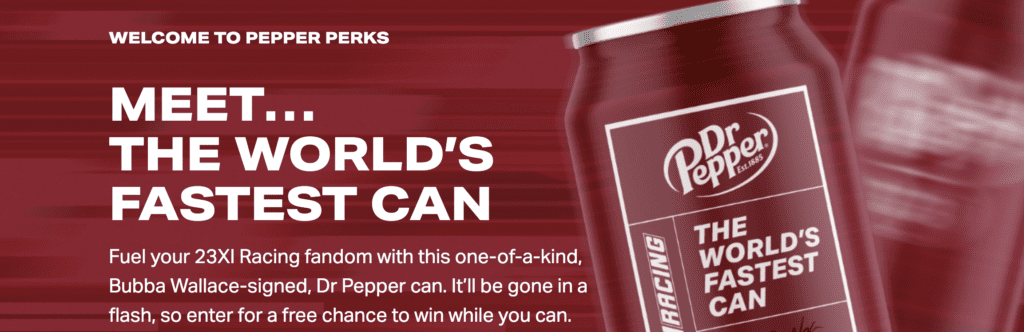 Enter here: Dr Pepper x 23XI World’s Fastest Can Giveaway