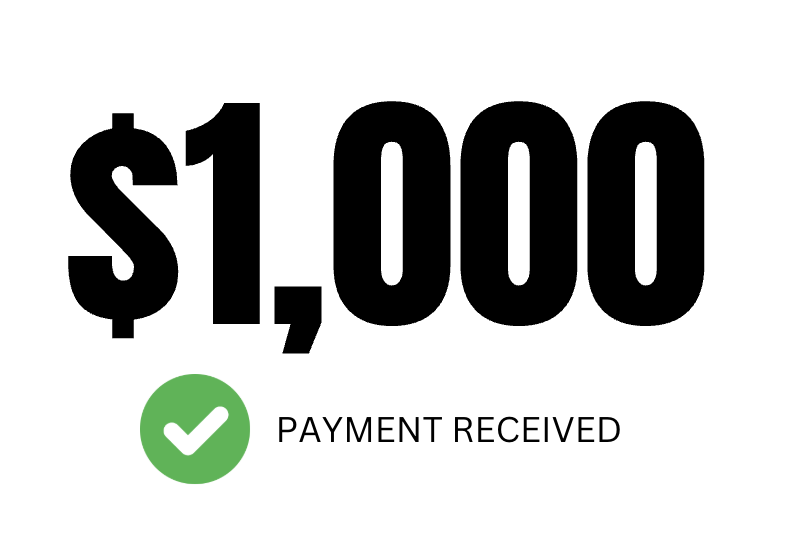 - A $1,000 check sent directly from the sponsor.