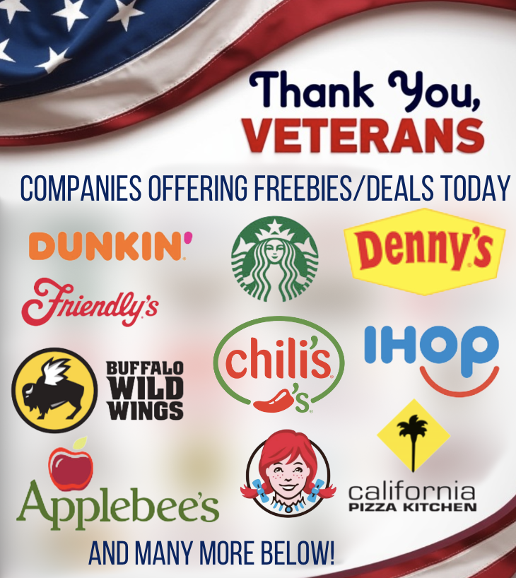 - Chili’s: Free meal from a special Veterans Day menu.