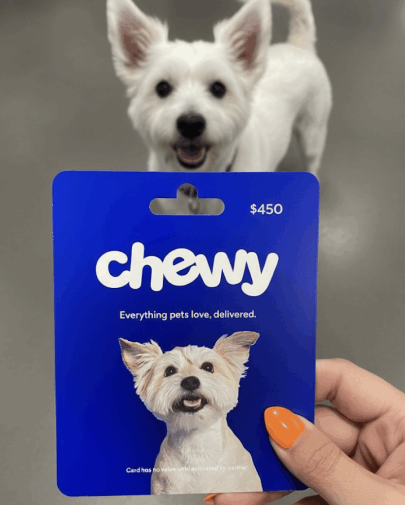 - One Chewy Gift Card worth $450. This is good for anything Chewy sells, from pet food and beds to toys and prescription meds. The flexibility alone makes this an extremely desirable prize.