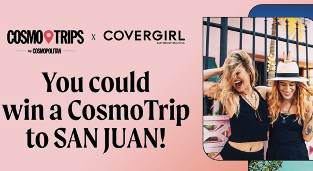 Don’t let this incredible opportunity pass you by. Enter the CosmoTrips x COVERGIRL Sweepstakes today for your chance to embark on a Puerto Rican adventure or transform your beauty routine with COVERGIRL. Your next great story is just a click away—make it a beautiful one!