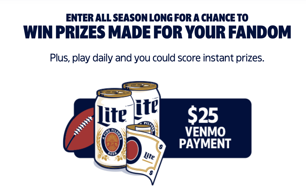 These are just a few of the fantastic prizes available in the Miller Lite® Football 2024 Promotion. The sweepstakes also includes apparel, gear packages, and Venmo payments, ensuring that there’s something for everyone.