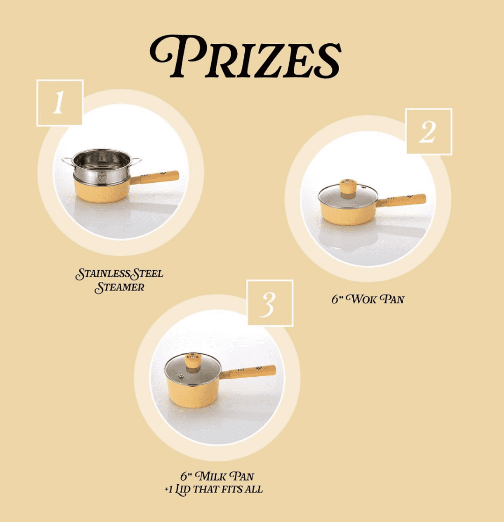There are 10 prizes available, and each winner will receive a complete 4-piece cookware set.