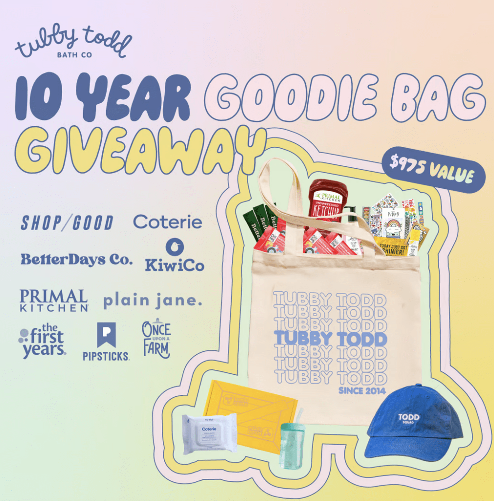 Are you ready to snag a fantastic prize without spending a dime? Tubby Todd Bath Co. is celebrating their 10th anniversary with an incredible giveaway that could make you one of the lucky winners to receive a Goodie Bag filled with amazing products valued at over $975! Keep reading to find out how you can enter this exclusive sweepstakes and possibly win big!