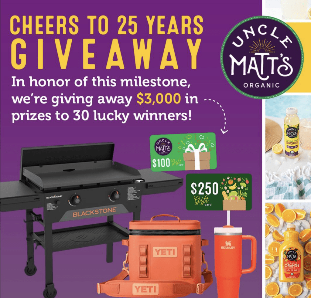 Have you ever wanted to enjoy the freshest organic products from Uncle Matt’s Organic while also winning fantastic prizes? The Uncle Matt’s Organic Giveaway is your chance to do just that! With a variety of exciting prizes, including a Blackstone Grill and gift cards, this sweepstakes offers a unique opportunity to enhance your organic lifestyle. Let’s dive into the details of this amazing giveaway and how you can enter for your chance to win.